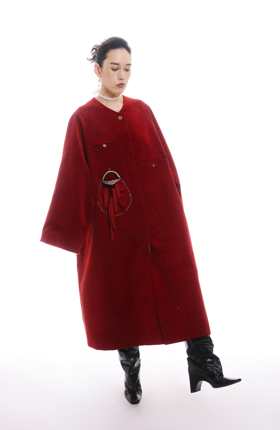 RED SATIN EGG TRENCH