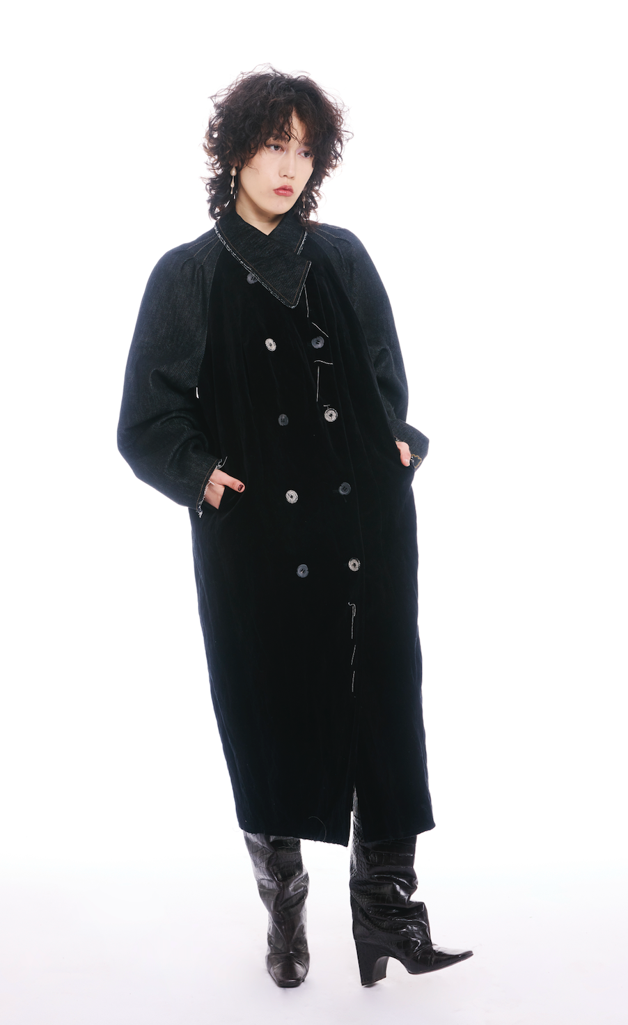 BLACK DENIM VELVET TRENCH
